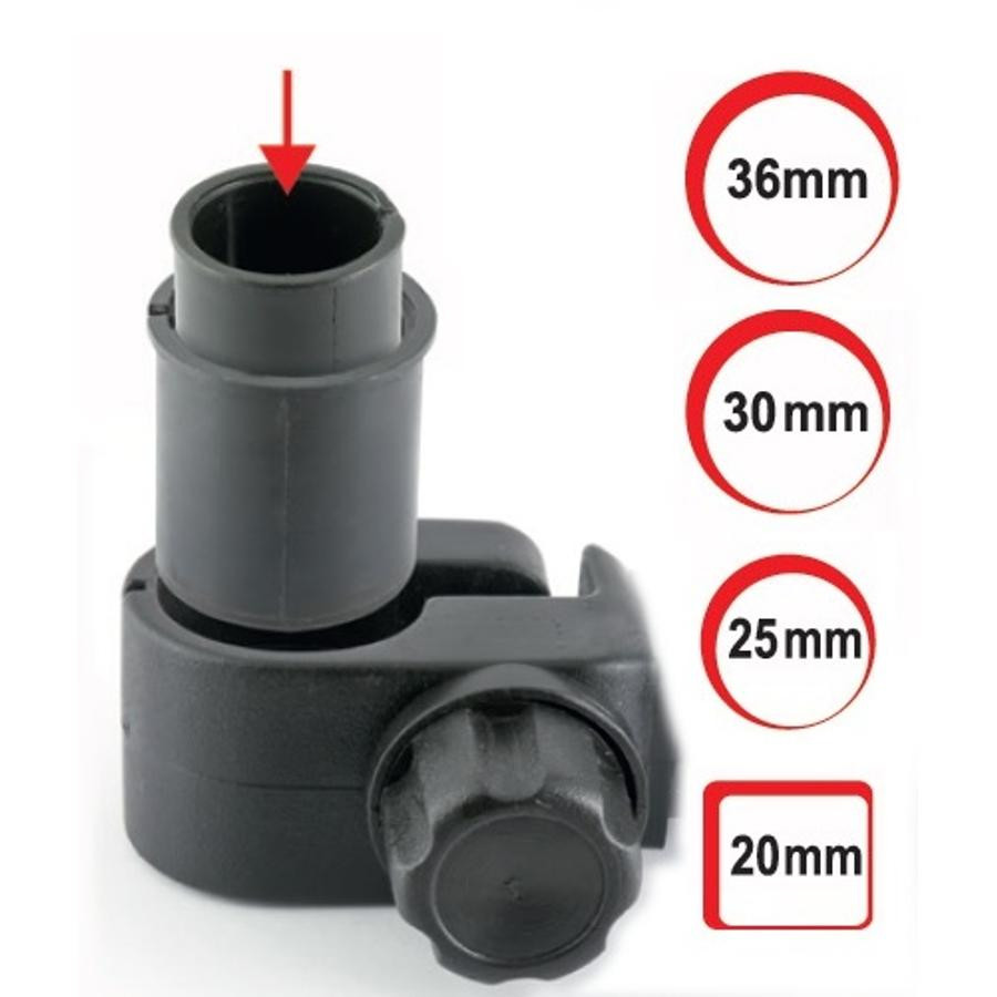 1 paio di supporti portacanne orizzontali. L'interno dei supporti è imbottito. Con l'aiuto di diversi inserti, può essere collegato ai seguenti piedini: • Piedino a sezione quadrata da 20 mm • Piedini a sezione circolare da 25, 30, 36 mm