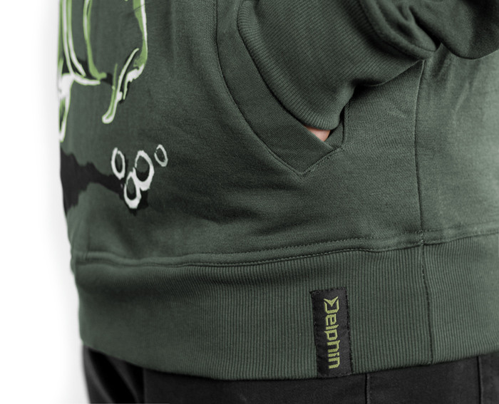 Felpa Delphin CATCH ME! una serie di felpe eleganti e uniche. CATCH ME IF YOU CAN (prendimi se puoi), con l'immagine di una carpa, diventerà una parte insolita del tuo guardaroba. Il motivo della carpa corre su tutto il corpo, sul fondo. La carpa appare come uno schizzo o un dipinto, pur conservando tutti i dettagli importanti. La carpa è raffigurata in una posizione in cui si avvicina a una manciata di boiles, esattamente nel momento che tutti aspettiamo sulla riva. La felpa stessa è di alta qualità, così come la stampa a colori utilizzata.