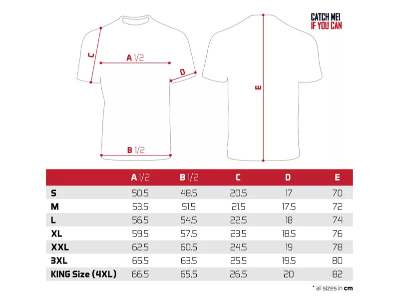 La maglietta stessa è di ottima qualità, così come la stampa a colori applicata. La offriamo in una vasta gamma di taglie dalla S alla TAGLIA KING (corrisponde a 4 + XL, che nella maggior parte dei paesi è chiamata XXXXXL). Il modello King size veste comodamente anche i pescatori più robusti, con un peso di 135 kg +.