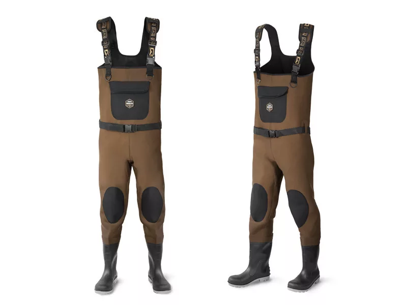 Grazie al suo colore marrone, il muco di pesce e altre macchie non saranno così visibili sulla sua superficie. La classica tasca frontale in neoprene può contenere piccoli oggetti, come la nostra licenza di pesca. Non c'è bisogno di temere di inginocchiarsi, poiché le ginocchia degli stivali sono rinforzate con un doppio strato di neoprene. Le spalline regolabili sono dotate di imbottitura in neoprene per un maggiore comfort durante la pesca di un'intera giornata. Sotto le spalline si trovano due anelli di plastica, sui quali possono essere riposti vari accessori, come un metro a nastro o delle pinzette, su elastici. La confezione include anche una cintura da guado, che impedisce all'acqua di entrare negli stivali in caso di scivolamento o caduta. La parte dello stivale ha una suola resistente e stabile, in grado di resistere anche alle condizioni più difficili. Sono foderati con solette in neoprene per proteggere meglio i piedi dal freddo.