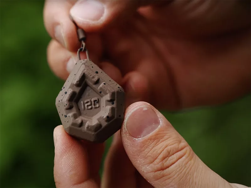 Grazie alla sua forma quadrata unica, siamo riusciti a creare un piombo compatto che ha lo stesso peso degli altri piombi disponibili sul mercato, ma è significativamente più piccolo. Questo garantisce eccellenti proprietà di lancio e un rapido affondamento. Per allungare e rendere più precisi i lanci, la parte inferiore del piombo è allargata. Le scanalature sulla superficie impediscono al piombo di scivolare sul fondo del letto. La superficie del piombo è rivestita di colore brunastro e decorata con macchie nere, per una migliore mimetizzazione sul fondo del letto.
