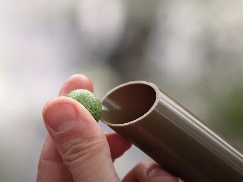 Le sue dimensioni e la sua lunghezza sono state progettate per essere compatto, ma comunque efficace, in modo da poter lanciare facilmente le boiles sul nostro spot di pesca quando peschiamo a breve distanza. Utilizzabile con boiles di 24mm di diametro.