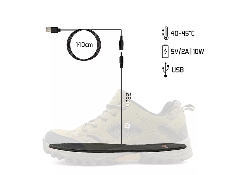 Le solette possono essere collegate al power bank tramite USB e possono riscaldare l'interno della scarpa fino a 40-45°C.