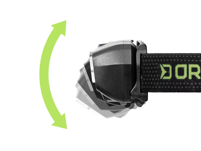 Per la massima flessibilità, la torcia frontale ORBIX è inclinabile, consentendo di regolarla all'angolo desiderato. L'elastico, regolabile, assicura una vestibilità confortevole.