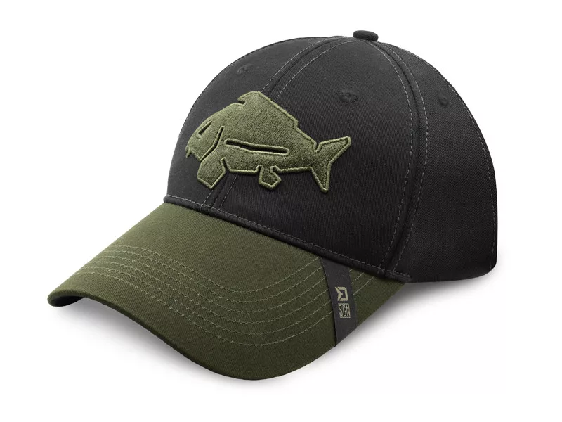 L'elegante combinazione di colori nero e verde oliva e l'originale motivo a carpa – OutLINE – creano un design accattivante e fresco per tutti. Questo cappellino può essere indossato durante l'esplorazione della natura, la caccia o anche in città.