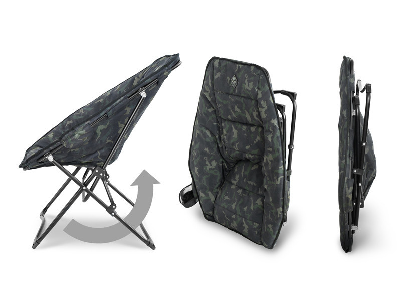 L'ampia seduta esagonale offre un comfort extra per lunghe sessioni. Il design con telaio metallico è robusto e stabile, anche su terreni irregolari. Si ripiega in pochi istanti, così puoi preparare rapidamente se c'è una cattura o devi spostarti. Dimensioni di trasporto compatte, che offrono una soluzione salvaspazio, ma con un comfort di grandi dimensioni.