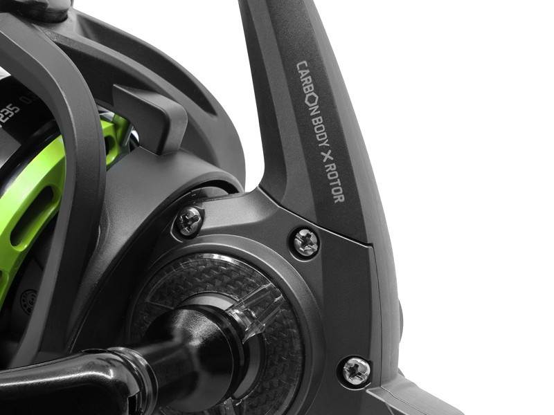 È dotato di una bobina conica alta e di un bordo della bobina che aumentano significativamente la distanza di lancio. La bobina metallica poco profonda è in grado di contenere una quantità sufficiente di lenza. Il corpo e il rotore in carbonio rendono il mulinello leggero nonostante le sue grandi dimensioni. Una soluzione protettiva sotto la bobina impedisce alla lenza di incastrarsi.