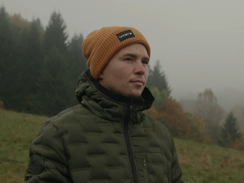 Il berretto è realizzato in tessuto a maglia finemente testurizzato, che grazie alla sua composizione al 100% poliestere, garantisce eccellente comfort termico, traspirabilitá e durata. Il materiale morbido ed elastico è piacevole al tatto e si adatta perfettamente alla forma della testa, quindi non causa disagio anche durante un uso prolungato. L'ampia piega aumenta la sensazione di calore intorno alle orecchie, mettendo in risalto l'etichetta con il logo IXTERA, che conferisce al berretto un aspetto moderno e pulito.