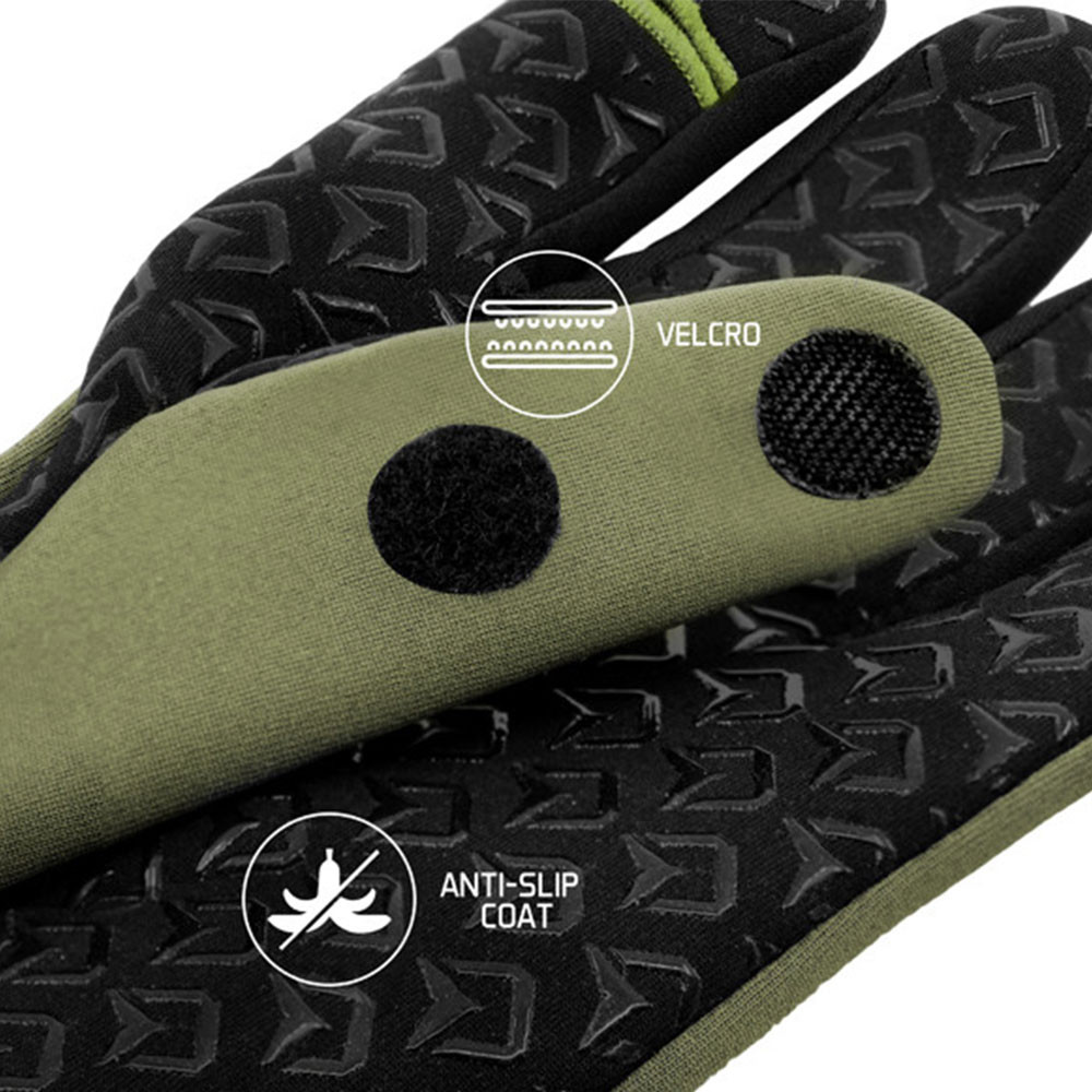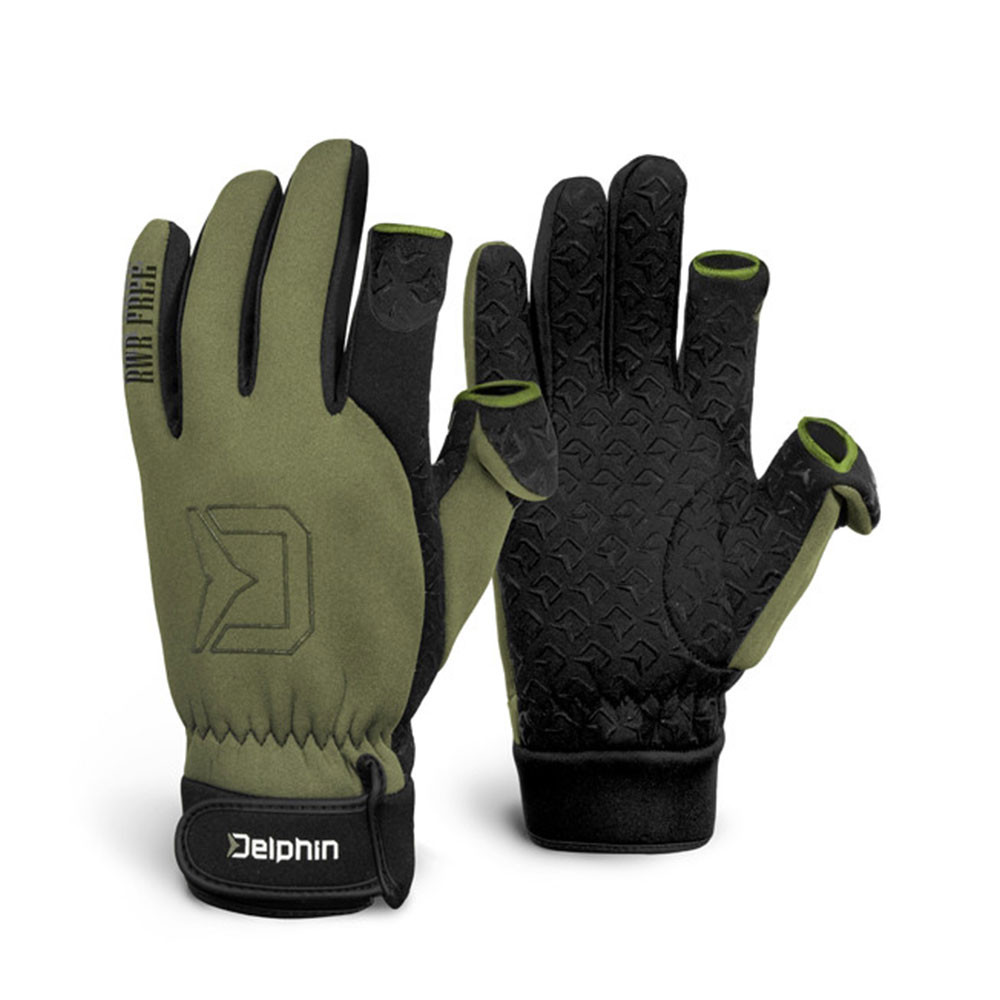 La combinazione di colori verde-nero offre un aspetto sportivo e pratico, rendendo il guanto Delphin RWR Free un'ottima scelta non solo per la pesca, ma anche per altre attività all'aperto.