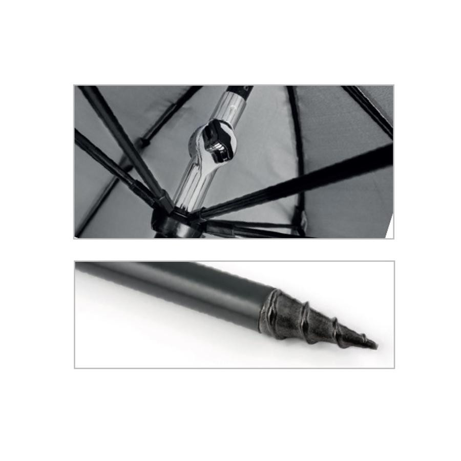La speciale filettatura all'estremità dell'asta centrale consente di avvitare saldamente l'ombrellone anche in terreni più duri, fornendo un supporto sicuro per ogni sessione di pesca. La confezione include anche una pratica borsa per il trasporto in nylon, che ne facilita il trasporto e lo stoccaggio.