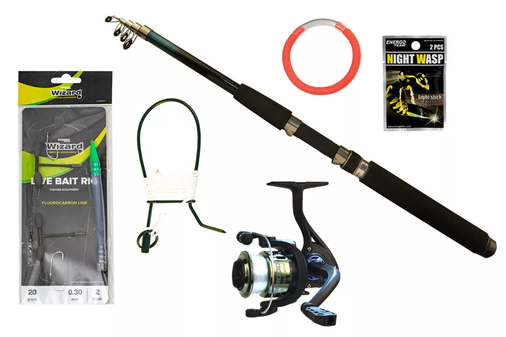 Il set include tutti i piccoli accessori indispensabili per la pesca al lucioperca: il Wizard Live Bait Rig pre-assemblato facilita l'uso del pesce esca, l'anello segnalatore di abboccata con cartucce luminose aiuta nella pesca notturna, mentre il cavo per pesce garantisce la conservazione sicura del pescato. Il trasporto dell'intera attrezzatura è reso possibile da una robusta borsa portacanna, che protegge gli attrezzi e garantisce un comodo trasporto.