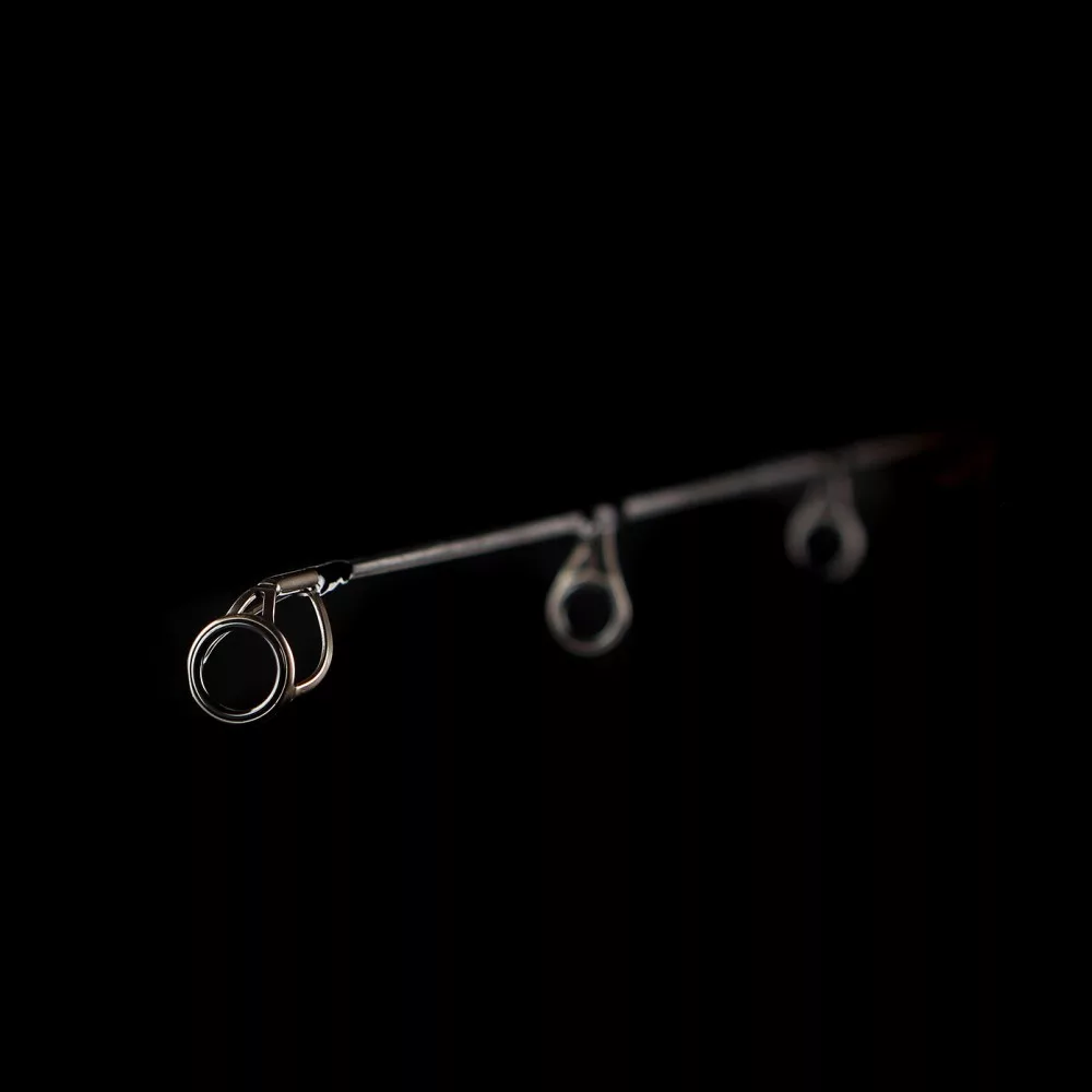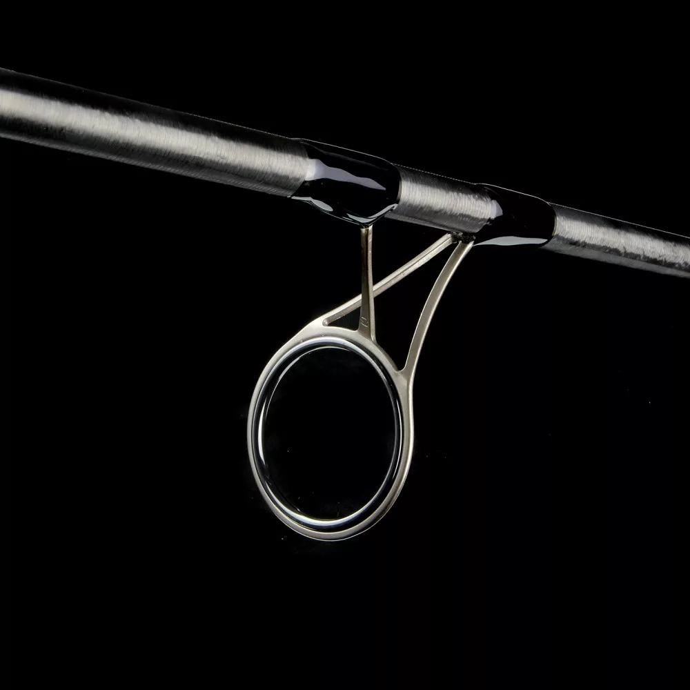 Abbiamo utilizzato il tessuto di carbonio TORAY 72T della più alta qualità per ottenere le migliori proprietà. Il carbonio a basso contenuto di resina conferisce alla canna un'azione rigida che favorisce il raggiungimento di grandi distanze di lancio. Durante i test, distanze di lancio di 150-160 metri sono state facilmente raggiunte, ma il lancio più lungo si è fermato vicino ai 185 m. Grazie al materiale di carbonio leggero, siamo riusciti anche ad aumentare lo spessore delle pareti della canna, il che permette l'uso di pesi di lancio estremamente elevati.