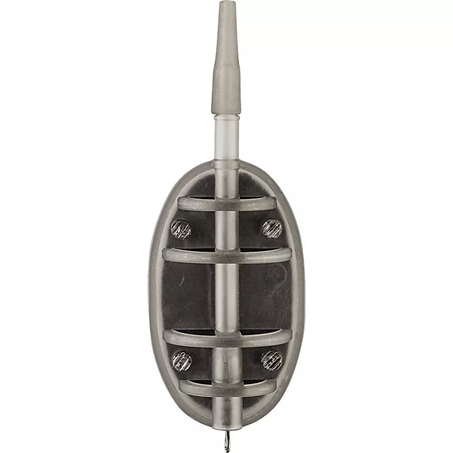 Pasturatore method con guida interna del filo (inline) e girella. Grazie alla zavorra, il pasturatore atterra sempre nella posizione corretta sul fondo del letto del fiume. La costolatura ben progettata assicura che la pastura si disperda nella posizione desiderata.