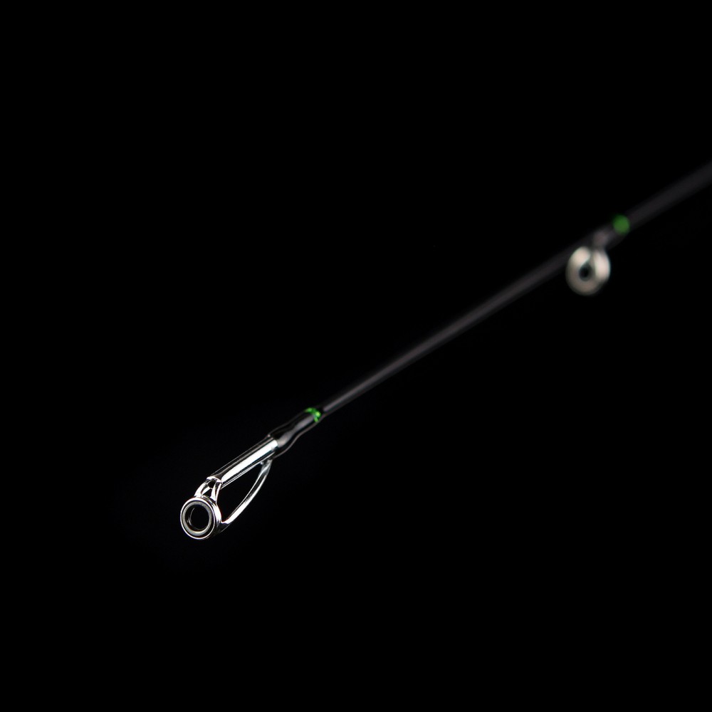 Nonostante il suo diametro sottile, ha un'azione rapida e rigida. Ottima per wobbler e shad. L'abbiamo equipaggiata con anelli SIC a gambo lungo, aumentando così la distanza e la precisione del lancio. È la canna ideale per principianti e spinner di livello intermedio.