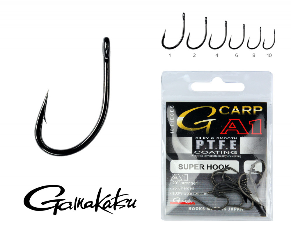 Gamakatsu A1 Teflon Super Hook Nero 6 10pz/confezione Amo da boilies con occhiello e ardiglione