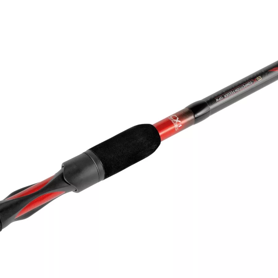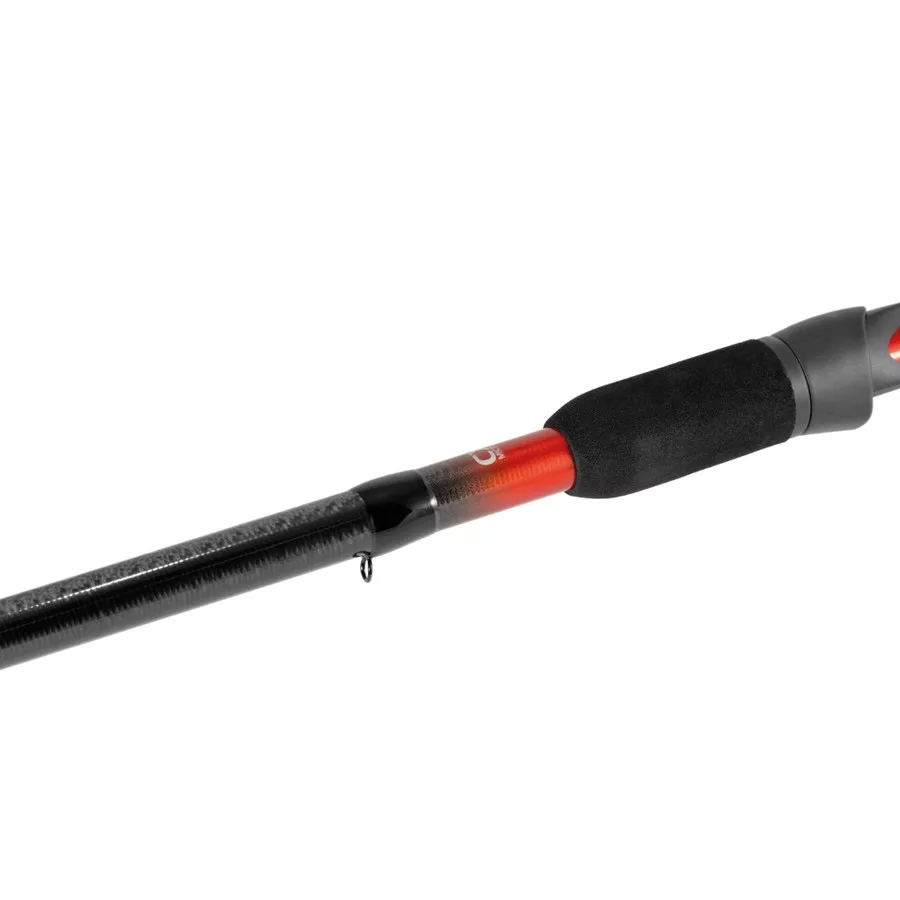 Canna da feeder realizzata in Carbonio CX1 Micro Pitch ad Alto Modulo con tecnologia X-Joint, con una parabolica perfetta. Grazie alla tecnologia applicata, il fusto non si torce sotto carico, e questo ha un effetto benefico anche sulla precisione del lancio. Grazie alla sua azione medium power, possiamo affrontare con successo anche pesci di grandi dimensioni (carpa, amur, barbo).