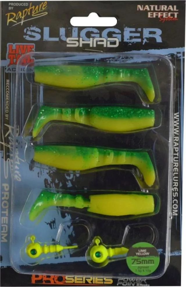 Rapture Slugger Shad Set 7,5cm Giallo Lime Set di Esche Artificiali 4+2 pz
