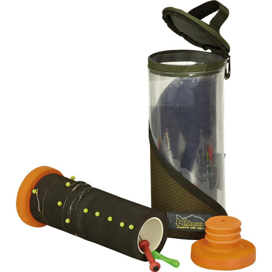 La K-Karp Cayenne Rig Bin è una borsa porta attrezzatura dall'aspetto particolare, ma estremamente pratica, che è la scelta ideale per gli amanti della pesca precisa e organizzata. Il suo design cilindrico non è solo estetico, ma anche funzionalmente eccezionale, in quanto offre un'ottima protezione per gli ami pre-legati e i terminali. La parte esterna della borsa ha pareti rigide, proteggendo così in modo sicuro il contenuto interno da danni, schiacciamenti o agenti atmosferici – ciò è particolarmente importante sul campo, durante il movimento o il trasporto.