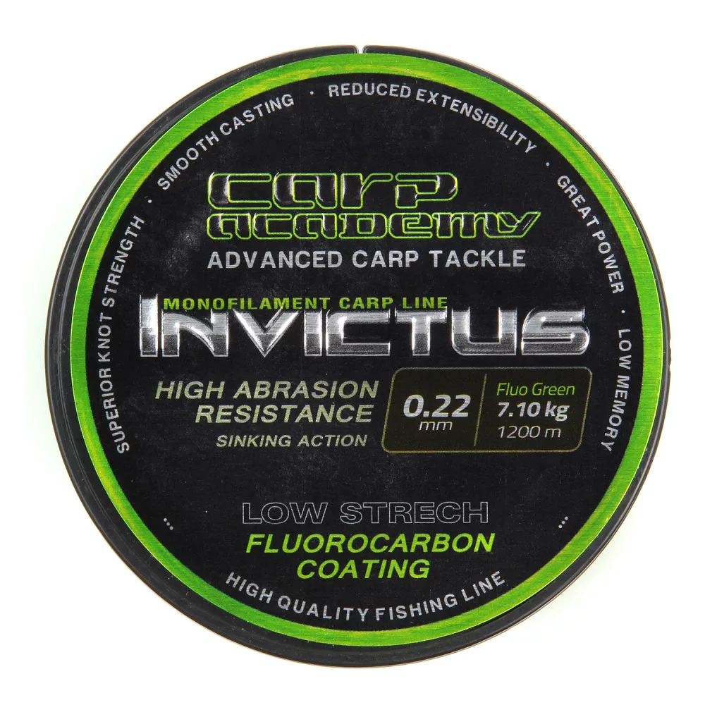 Carp Academy Invictus 1200m 0.22mm Filo principale Monofilo -Verde fluo