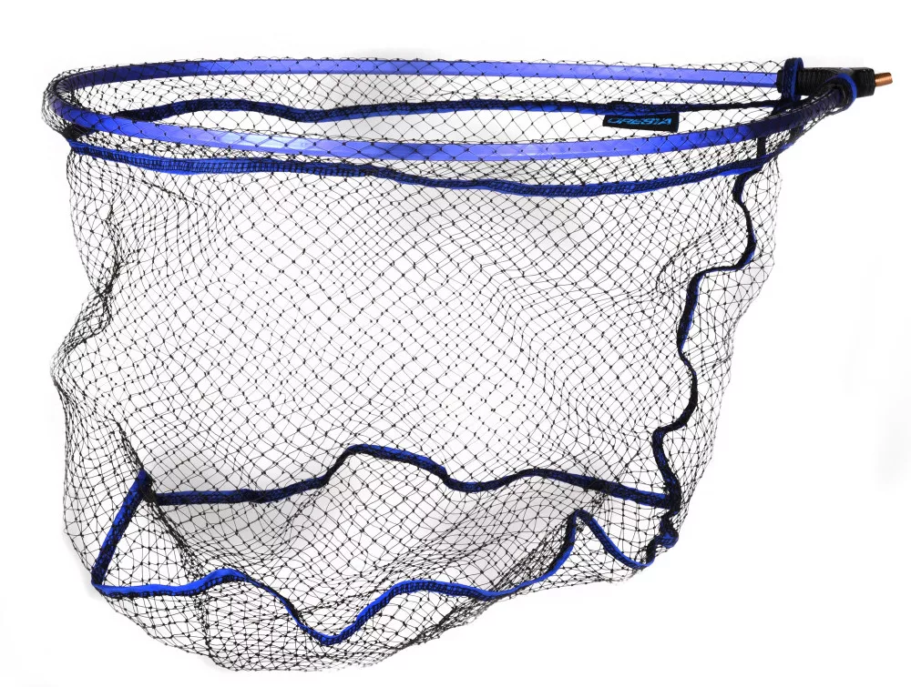 Questi robusti guadini sono realizzati in nylon annodato da 0,30 mm, di colore nero, con una larghezza di 12 mm. Questa larghezza della maglia consente alla rete di far passare l'acqua facilmente e rapidamente durante il guadinaggio del pesce. L'anello ovale blu è montato sul blocco metallico, che conferisce alla rete una struttura massiccia e durevole.
