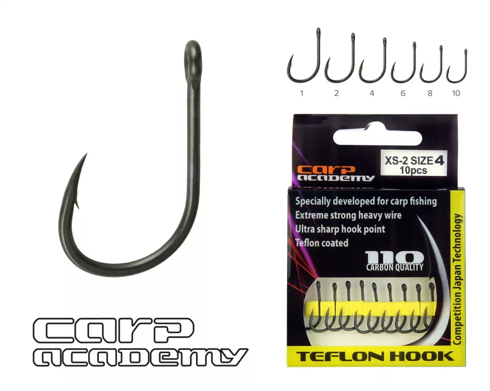 Carp Academy Teflon Hook XS-2 Nero 4 10pz/confezione Occhiellato Barbigliato Amo da boilie