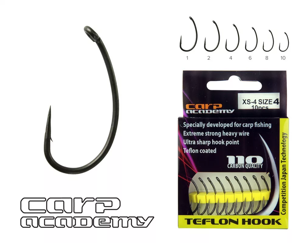 Carp Academy Teflon Hook XS-4 Nero 4 10pz/confezione Occhiellato Barbigliato Amo da boilie
