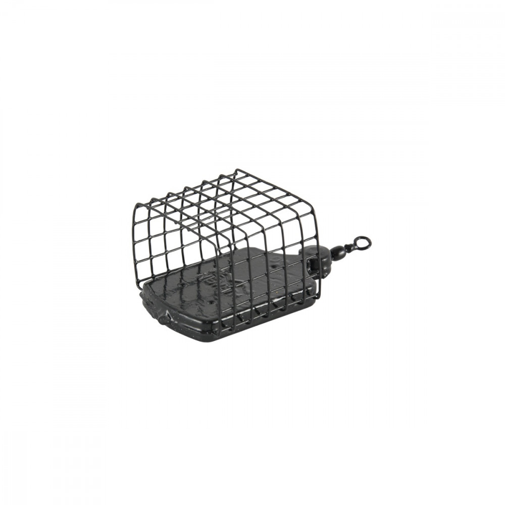Il tubo a filo può essere riempito con vari mix di pastura, si possono formare tappi di pastura alle due estremità e si possono mettere vermi al centro. Grazie alla sua forma angolare, questo pasturatore può essere utilizzato in fiumi con forte corrente, poiché la sua forma piatta e reclinata e il suo grande peso in piombo impediscono anche alla corrente più forte di farlo rotolare via. Può essere attaccato alla nostra attrezzatura con l'aiuto di un occhiello e una clip, anche al moschettone anti-groviglio.