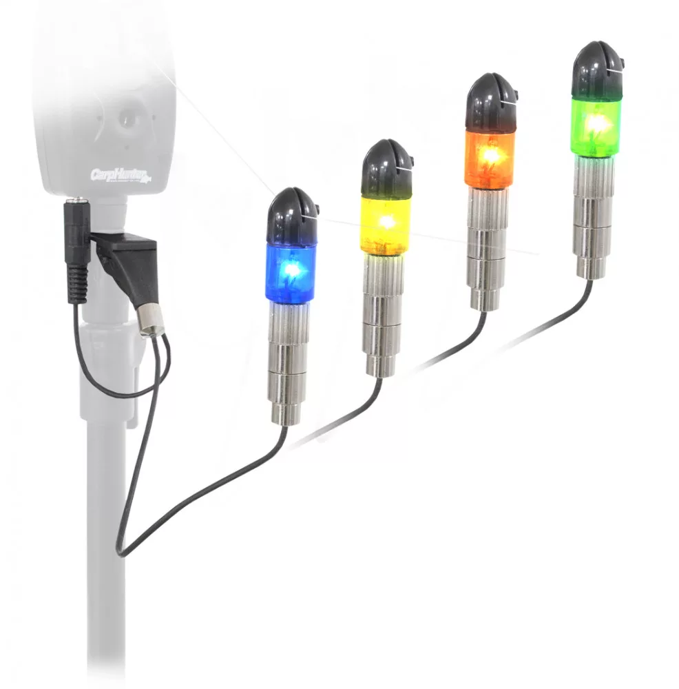 La massima efficacia dei segnalatori elettrici può essere raggiunta con l'uso degli swinger. Questo piccolo dispositivo, chiamato anche 'scimmietta strisciante', si occupa della pre-tensione della nostra lenza in ogni circostanza. Il suo ruolo più importante è quello di mantenere la lenza tesa anche in caso di abboccate a caduta, garantendo così che la lenza che scorre sul rullo del segnalatore mantenga sempre una connessione perfetta per un funzionamento ottimale. Il gruppo prende il nome dal fatto che l'unità di segnalazione luminosa è collegata all'elemento di fissaggio con una catena che rappresenta un peso proprio adeguato. Naturalmente, anche in questo tipo si trova una spina jack all'estremità di un filo sottile, per l'alimentazione e quindi per un uso impeccabile nelle ore buie. Gli swinger Carp Hunter di alta qualità sono disponibili con LED che emettono luce blu, gialla, arancione e verde.