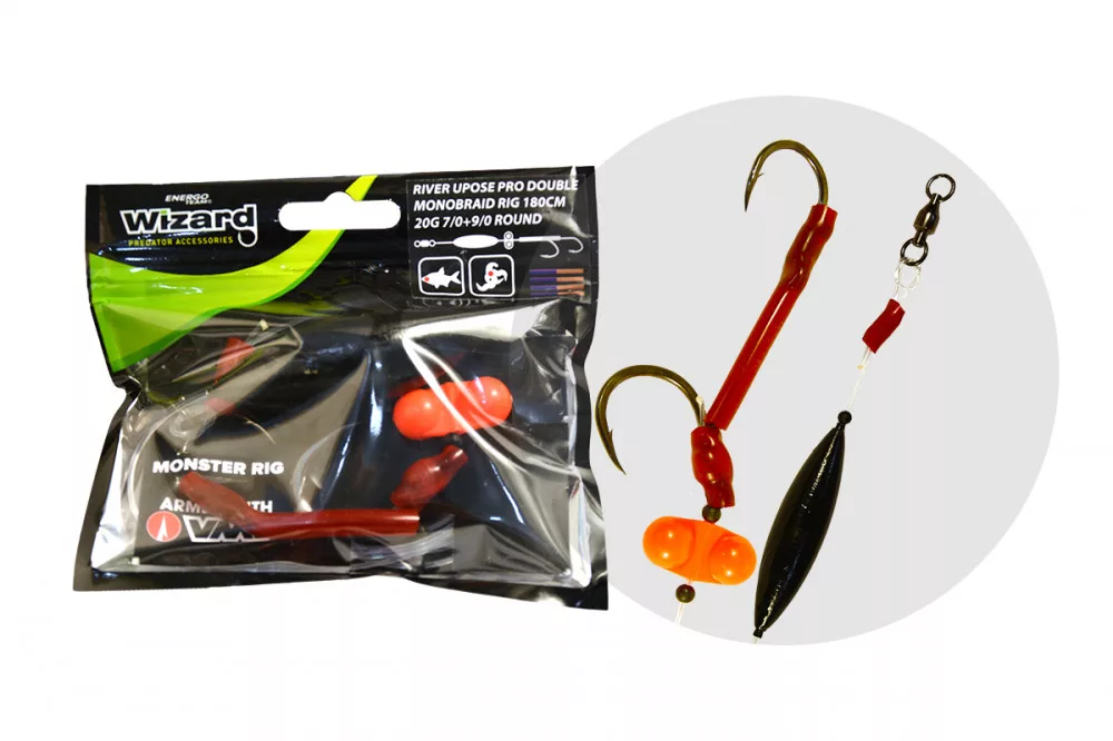 Wizard Monster River Upose Pro Double Monobraid Rig 7/0+9/0 20gr Round Terminale per siluro