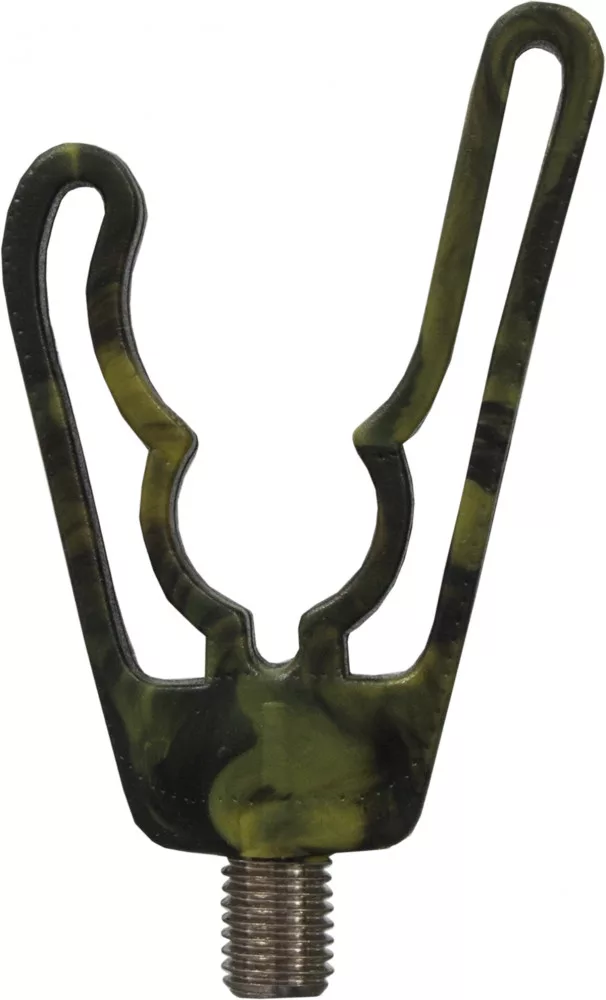 EnergoTeam testa poggia canne asimmetrica mimetica - La testa poggia canne con motivo mimetico può essere utilizzata efficacemente su qualsiasi rod-pod, treppiede o tradizionale poggia canne a picchetto.