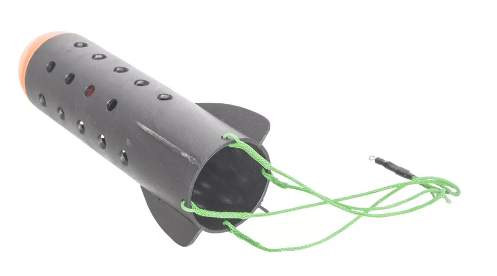 Se non abbiamo la possibilità di pasturare con la barca, dobbiamo trovare una forma di pasturazione utilizzabile anche dalla riva. Il metodo più comune è la fionda, ma per distanze maggiori, anche di 100-120 metri, è possibile far arrivare fino a 300-400g di pastura utilizzando il razzo da pastura. Il razzo può essere fissato con una girella e, all'impatto con l'acqua, si capovolge, disperdendo la pastura. L'acqua fuoriesce dai fori del razzo, rendendolo facile da recuperare. Per il suo utilizzo è necessaria una canna di adeguata robustezza di 3,30-3,60 m, con un casting weight di almeno 150 gr. Con il razzo è possibile lanciare quasi ogni tipo di pastura: mais, grano, boilies, pellet ecc..