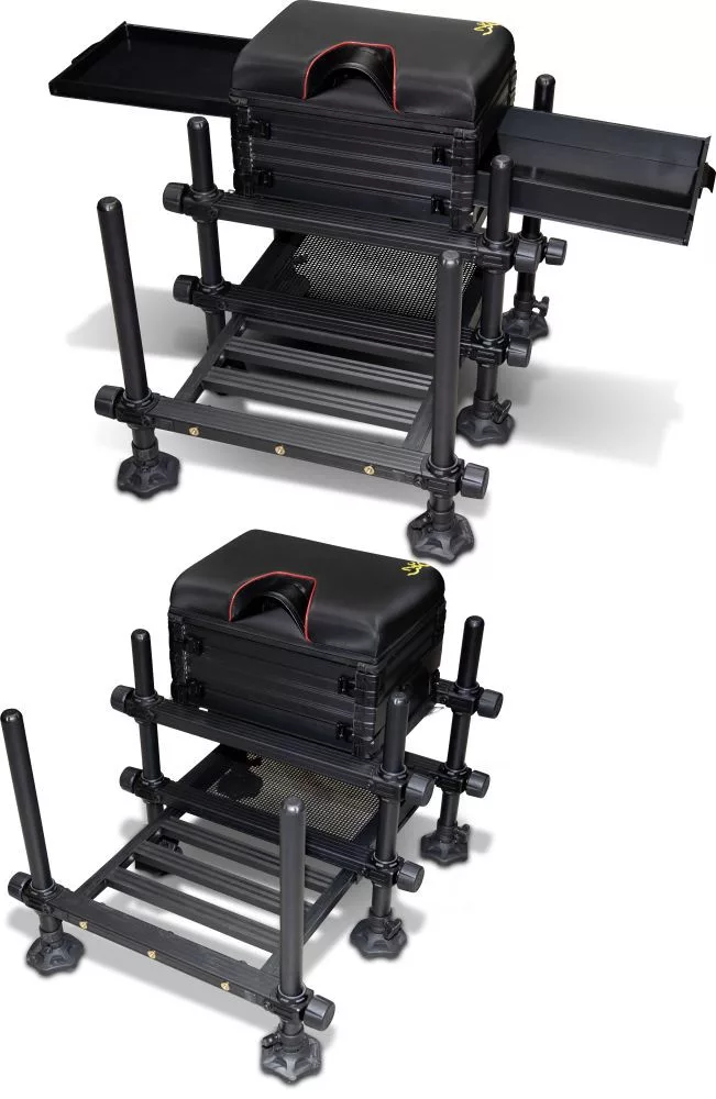 Può essere montato in un'area ridotta, rendendo il paniere più facile da riporre in auto, facile da trasportare a piedi e eccellente per l'uso su diversi tipi di terreno, a differenza di altri seatbox con struttura a cassetti. È molto stabile e robusto, dotato di gambe da 36 mm e di morsetti appositamente sviluppati. Il bordo superiore del paniere è regolabile in altezza, in modo da poter sedere in una posizione più comoda anche durante il montaggio e lo smontaggio degli scomparti. Caratteristiche del Xi-Box 36 Compact: • Gambe di fissaggio telescopiche con diametro di 36 mm con piedini mobili per una maggiore stabilità. • Poggiapiedi estensibile. • Chiusure sicure e antiscivolo con grandi manopole facili da usare. • Vassoio grigliato saldamente fissato al bordo inferiore per riporre gli accessori durante la pesca. • Livella a bolla integrata e altezza della seduta regolabile per un maggiore comfort. • 2 x cassetti laterali da 3 cm e 1 x da 6 cm. • 1 x vassoio portaoggetti da 4 cm e 1 x da 3 cm. • Sono disponibili anche vassoi portaoggetti aggiuntivi.