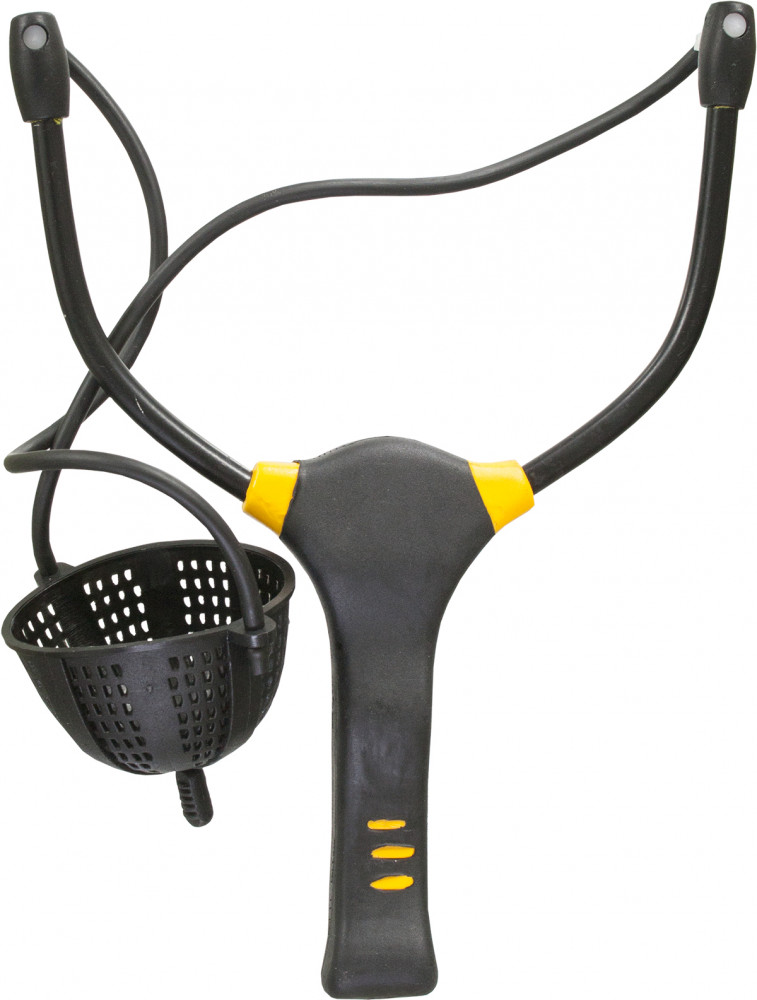 Fionda robusta, utile nella pesca a match e nel feeder. Permette di pasturare con precisione a 50-60 m di distanza con piccole palline di pastura, bigattini incollati, semi incollati. Può essere usata semplicemente anche per lanciare mais e altri semi. Prestiamo attenzione a tenere la fionda sempre alla stessa altezza e a tirarla sempre allo stesso modo. Così saremo precisi dopo un po' di pratica. Possiamo usare più fionde, tagliando la gomma su misura possiamo fare in modo che ogni fionda lanci palline identiche sempre alla stessa distanza.