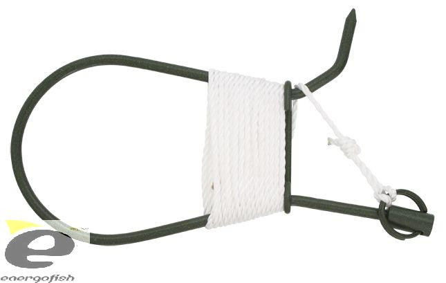 Il pesce infilato nella pinza in acciaio flessibile può essere fissato a riva con una robusta corda. La misura per il siluro è di 18 cm.