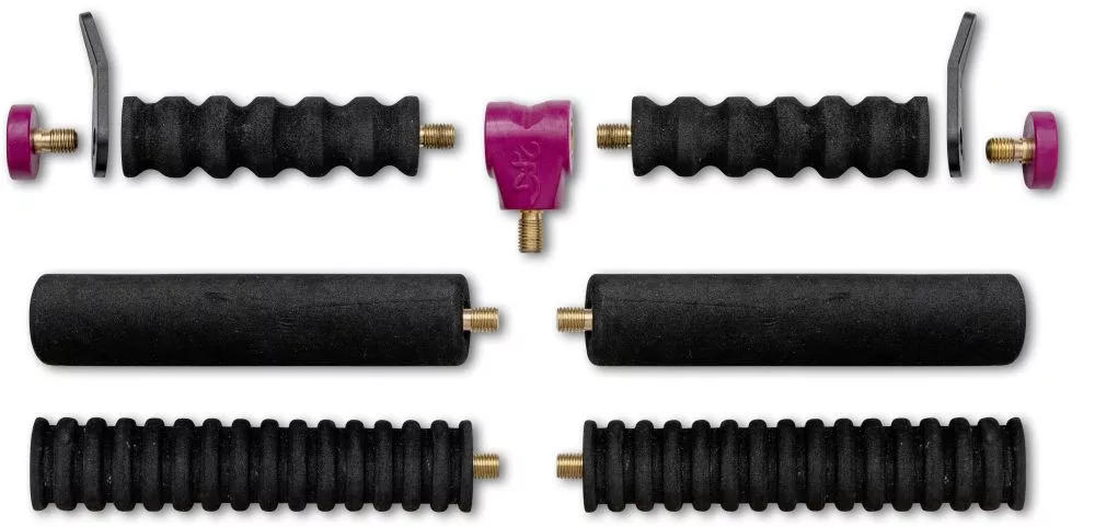 Indipendentemente dal fatto che si peschi in fiume, lago o in acque con ripopolamento intensivo, i tre tipi di supporti per canne in EVA disponibili (liscio 15cm, nervato 15 cm e profilato 10cm) con i raccordi in ottone sono la soluzione stabile e adeguata.