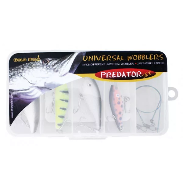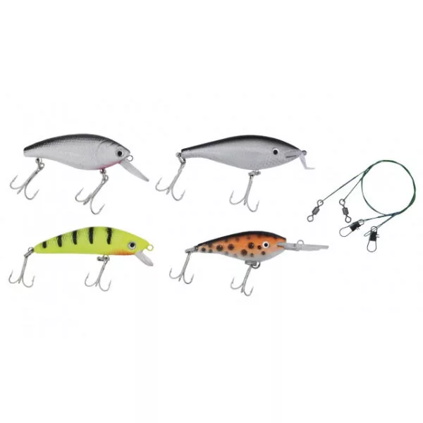 Questo Set di Wobbler Universale è eccellente per la pesca di lucci, lucioperca e aspi. Le esche artificiali sono alloggiate in una pratica scatola ben chiudibile, che occupa poco spazio. Con 4 pesci artificiali dai colori naturali e 2 terminali per luccio, può far parte dell'attrezzatura di ogni pescatore. Il terminale è realizzato in materiale di qualità e ha una lunga durata. Resiste al morso del luccio. È quasi invisibile nell'acqua per i pesci. Il terminale è ottimo per la pesca in laghi e fiumi.