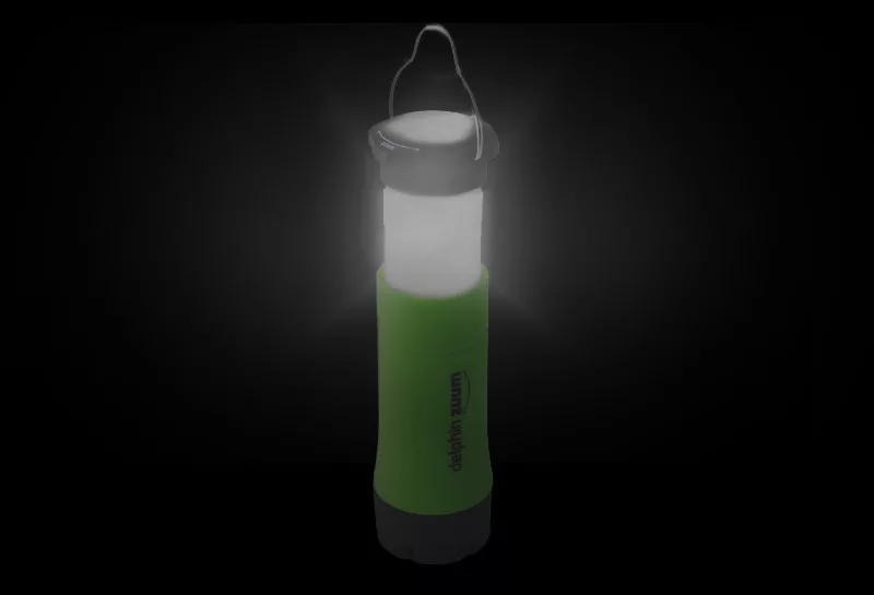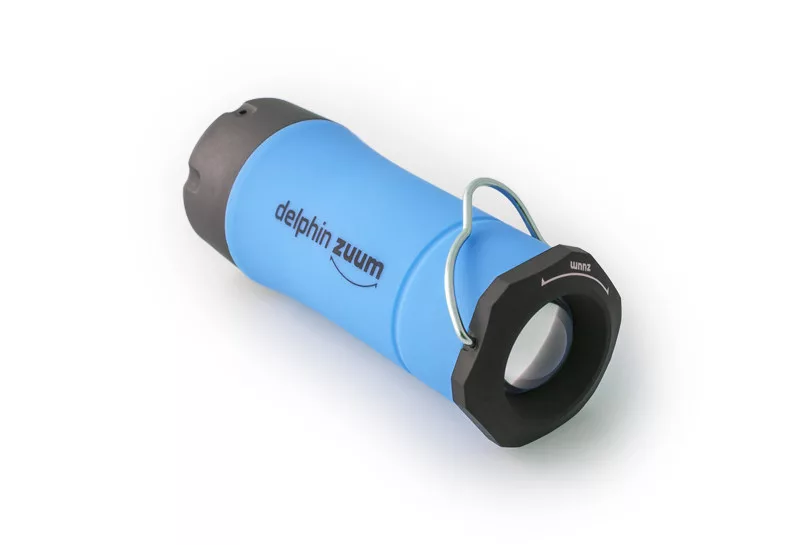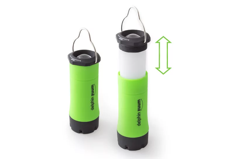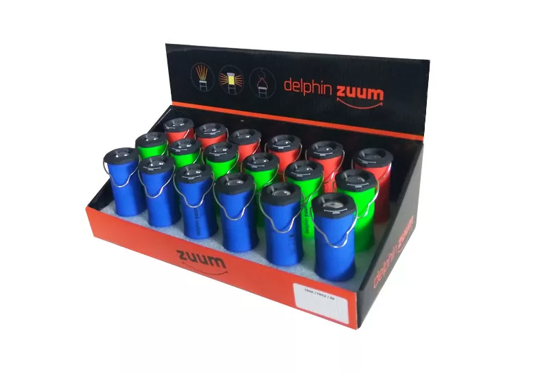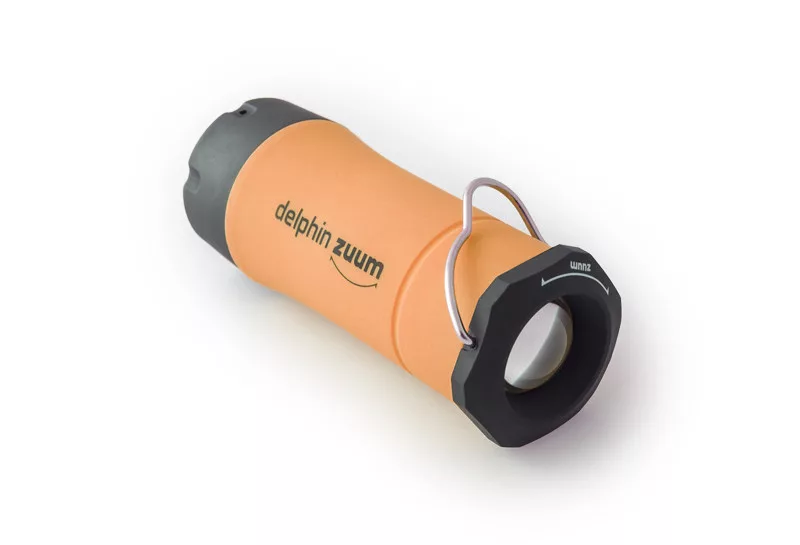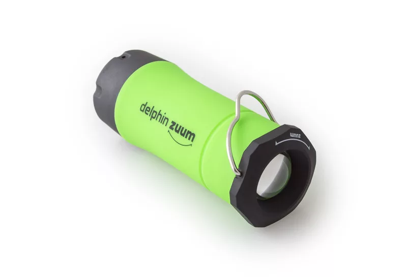 Una torcia senza la quale la vostra pesca sarà impensabile. La Delphin ZUUM, grazie alle sue dimensioni compatte, è facile da trasportare e, grazie alla sua versatilità, è un compagno insostituibile in condizioni di luce scarse. Può essere utilizzata come torcia, quando la luce illumina direttamente nella direzione data dalla testa rotante. Con una rotazione, la parte centrale può essere estratta, trasformando la lampada in una lanterna. Questa lanterna è autoportante e può essere posizionata ovunque, o appesa grazie al gancio. Le possibilità di questa lampada non finiscono qui. Il LED interno funziona in tre modalità: luce intensa, luce attenuata e modalità lampeggiante. Come potete vedere, l'utilizzabilità della Delphin ZUUM è infinita, può essere usata ovunque, dalla classica torcia all'illuminazione della tenda..... Il corpo della Delphin ZUUM è disponibile in 3 colori: verde, arancione e blu.