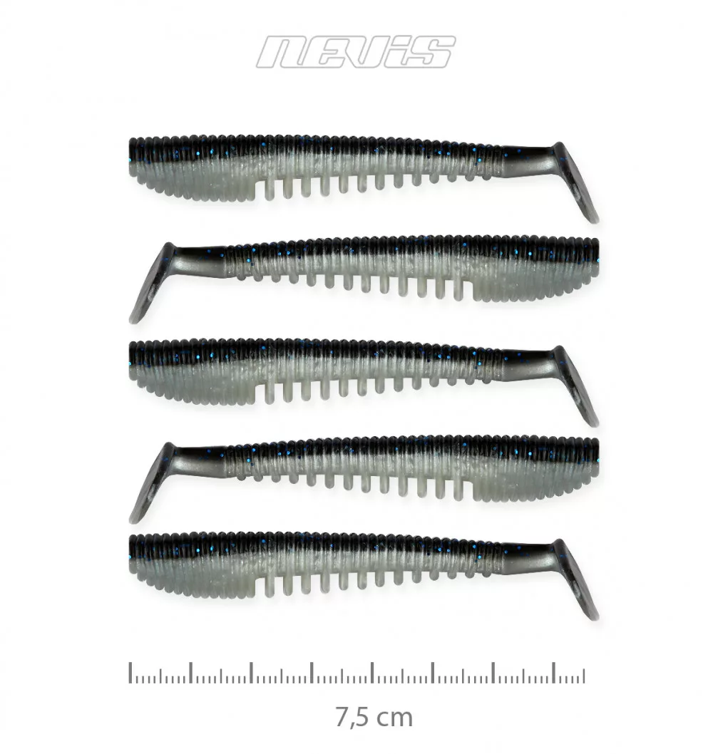 Nevis Impulse Shad 7,5cm 3,05gr 5pz/conf Nero-Argento Esche in plastica