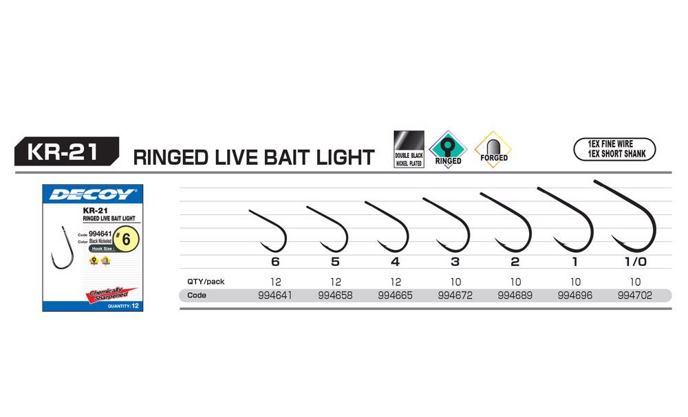 Recensioni Decoy KR-21 Round Live Bait Light 1 Füles Szakállas Egyágú Ragadozóhalas Horog 12db