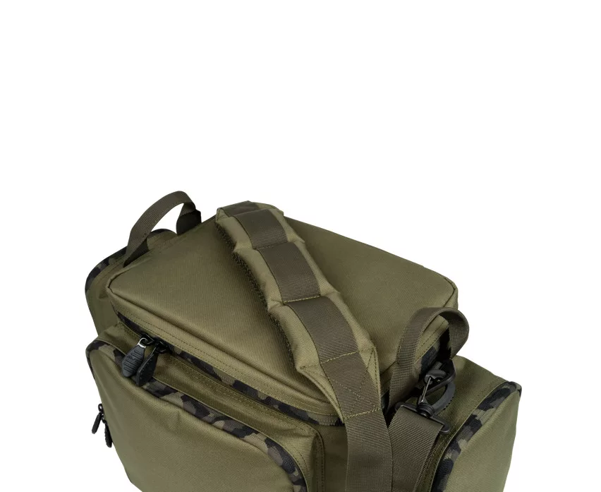 Borsa compatta, ideale per chi preferisce la facile trasportabilità. Tre tasche esterne: una grande tasca anteriore e due laterali per un facile accesso. Tracolla imbottita rimovibile per un trasporto confortevole. Maniglie laterali per un facile carico e scarico dal carrello. Base resistente e impermeabile con superficie facile da pulire per una facile manutenzione. Realizzata in tessuto Oxford 600D resistente e impermeabile, con cerniere robuste da 10 mm e dettagli mimetici Avid.