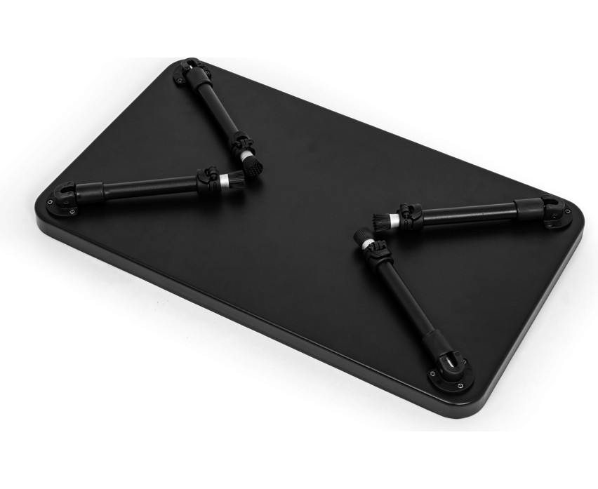 Il sistema di gambe a molla permette un montaggio rapido e semplice, con uno sforzo minimo. Le quattro gambe completamente regolabili sono dotate di meccanismo Avid Cams, che consente di posizionare il tavolo perfettamente in piano anche su terreni irregolari. L'altezza regolabile (25–35 cm) assicura il massimo comfort, adattandosi a qualsiasi posizione seduta o configurazione della tenda.