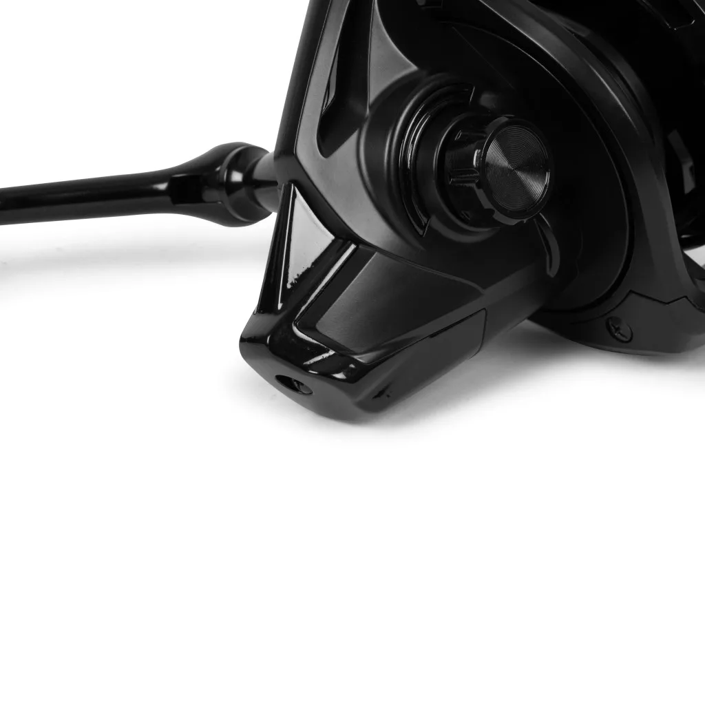 Il mulinello è dotato di una manovella in alluminio anodizzato nero con un pomello morbido al tatto che lo rende comodo da usare. La bobina è anch'essa realizzata in alluminio anodizzato, garantendo una lunga durata e un'elevata resistenza. Il rapporto di recupero di 4,6:1 e i 5+1 cuscinetti a sfera in acciaio inossidabile garantiscono un funzionamento fluido e preciso, mentre il rullino guidafilo sovradimensionato anti-torsione e l'antiritorno istantaneo aumentano ulteriormente l'affidabilità.