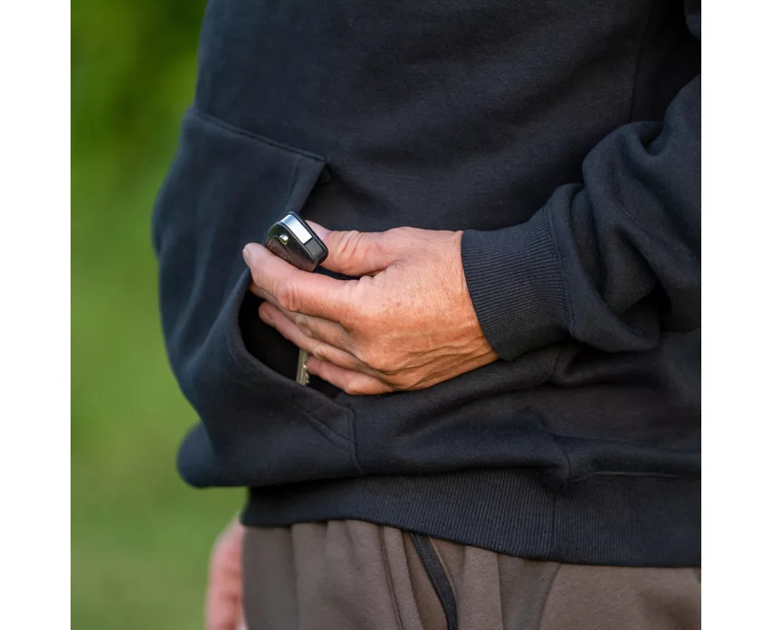 Il design della felpa è stato ottimizzato specificamente per lunghi periodi all'aperto. Il materiale resistente e caldo, il taglio confortevole e il cappuccio protettivo assicurano che il pescatore possa concentrarsi completamente sull'acqua e sulle abboccate, senza essere disturbato dalle intemperie. Inoltre, il colore nero non attira l'attenzione, adattandosi meglio all'ambiente naturale.