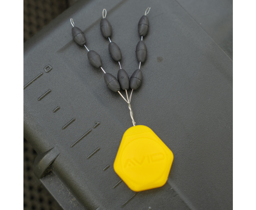 Le zavorre presentano un foro interno liscio che protegge i leader rivestiti dai danni, garantendo al contempo un fissaggio stabile per prevenire lo scivolamento. Il prodotto è disponibile in due misure: la versione più piccola in confezione da 18 pezzi, mentre quella più grande in confezione da 9 pezzi. Le zavorre sono fornite su un robusto e sagomato ago per inneschi Avid, che facilita la conservazione e l'uso. Grazie al design riutilizzabile, le zavorre rappresentano una soluzione pratica a lungo termine.