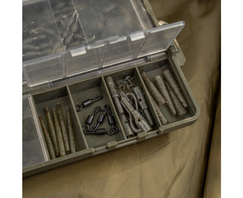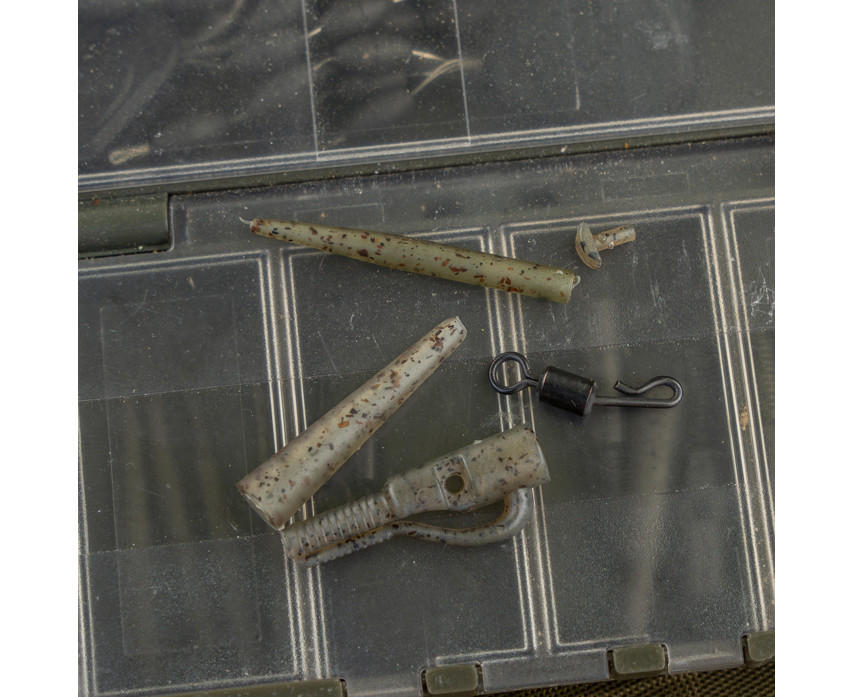 L'Avid Outline Flecktone Pinned QC Lead Clip Kit è un set completo di clip per piombi, contenente tutti gli elementi necessari, progettato specificamente per una pesca alla carpa sicura ed efficace. L'obiettivo del kit è garantire un rilascio affidabile del piombo nei momenti critici, offrendo al contempo un terminale stabile e un aspetto discreto sott'acqua.