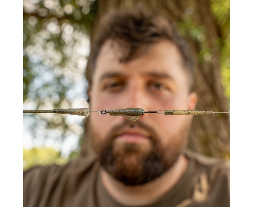 Il braccio rinforzato consente l'uso sicuro di piombi più pesanti, garantendo che il rig funzioni in modo affidabile anche su terreni difficili. Il sistema è utilizzabile in modo ottimale con i gommini Outline Flecktone Standard o Naked Tail Rubber, che, se usati insieme, forniscono massima stabilità e discrezione.