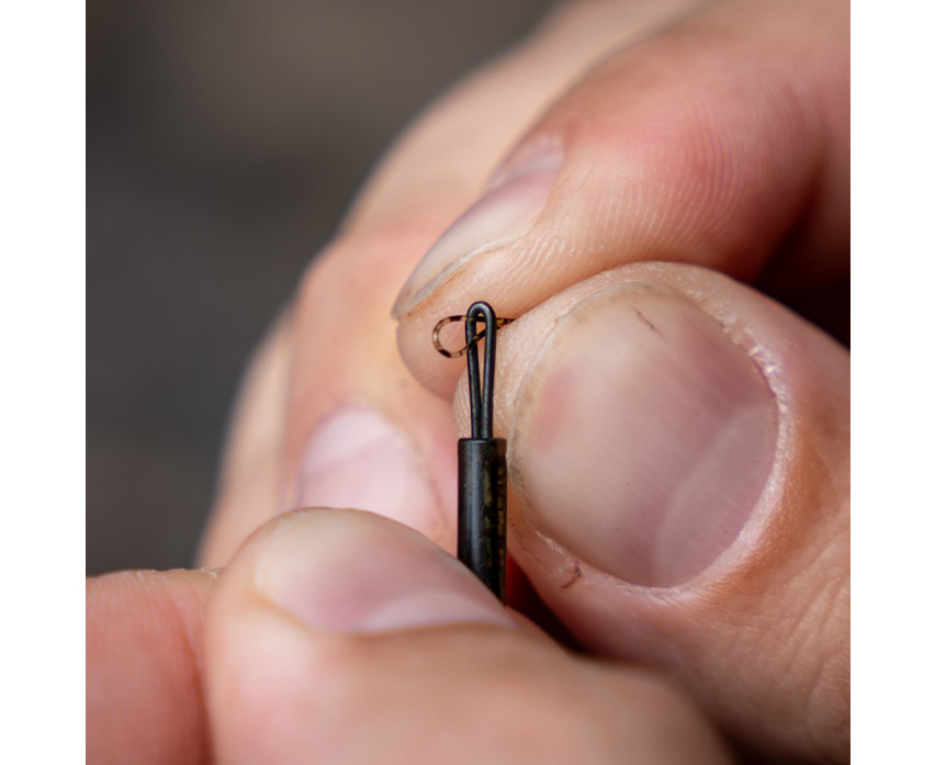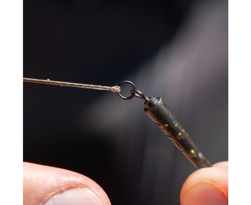 La parte superiore del gambo presenta un'asola conica a profilo stretto, in grado di accogliere lenze principali fino a 0,50 mm di spessore. La lenza principale può essere legata direttamente all'asola, oppure, per un cambio rapido del sacchetto PVA, è possibile utilizzare un nodo asola-su-asola. Questa flessibilità consente al pescatore di adattare l'assemblaggio del rig alla propria tecnica e situazione.