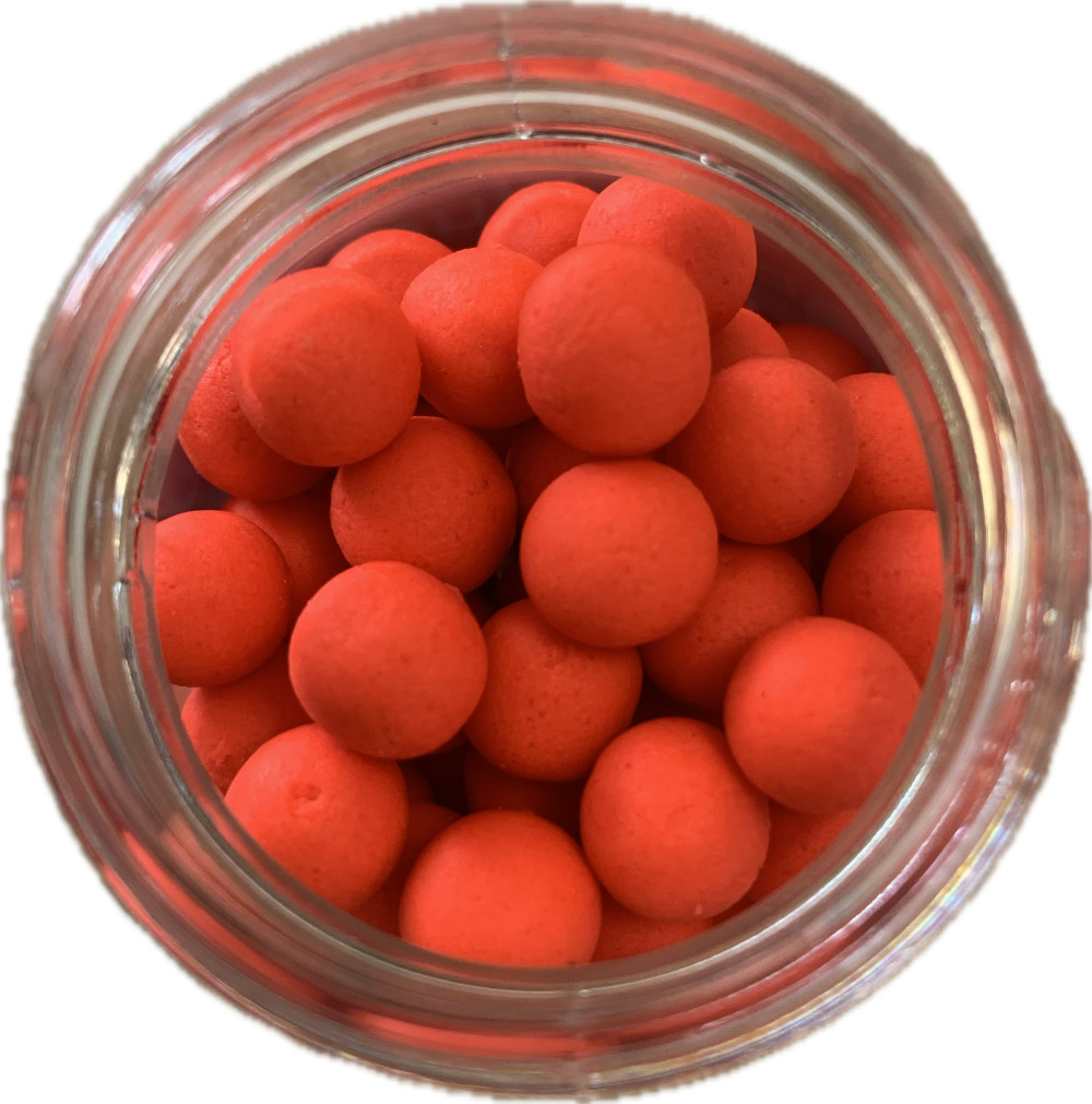 Le nostre boilies BaitBait Fluo Pop-Up hanno colori molto vivaci, un aroma potente, e una lunga capacità di galleggiamento. Contengono una quantità extra di stimolatori d'appetito e aminoacidi. Prima dell'imballaggio, le esche passano anche attraverso un bagno stimolante l'appetito, in modo che siano il più attive e fresche possibile quando vengono utilizzate. La loro composizione è unica sul mercato ungherese, sono composte da ingredienti molto speciali. Queste esche sono state le più difficili da creare, perché anche qui abbiamo mirato a fornire ai pescatori un'esca di qualità eccezionale. Durante lo sviluppo abbiamo provato molte proporzioni di miscelazione, ma anche qui abbiamo puntato alla perfezione, riuscendo così a creare queste esche. Questi Pop-Up sono caratterizzati da una consistenza leggermente gommosa e una struttura quasi indistruttibile. La struttura delle esche permette anche un'ulteriore immersione (dipping). Sapore: fragola-pesce.