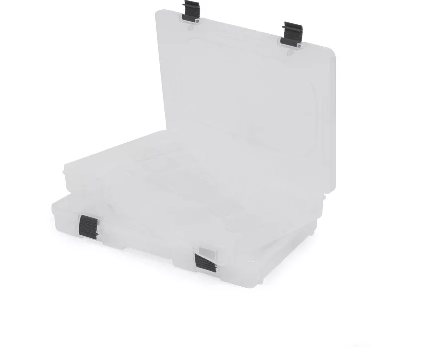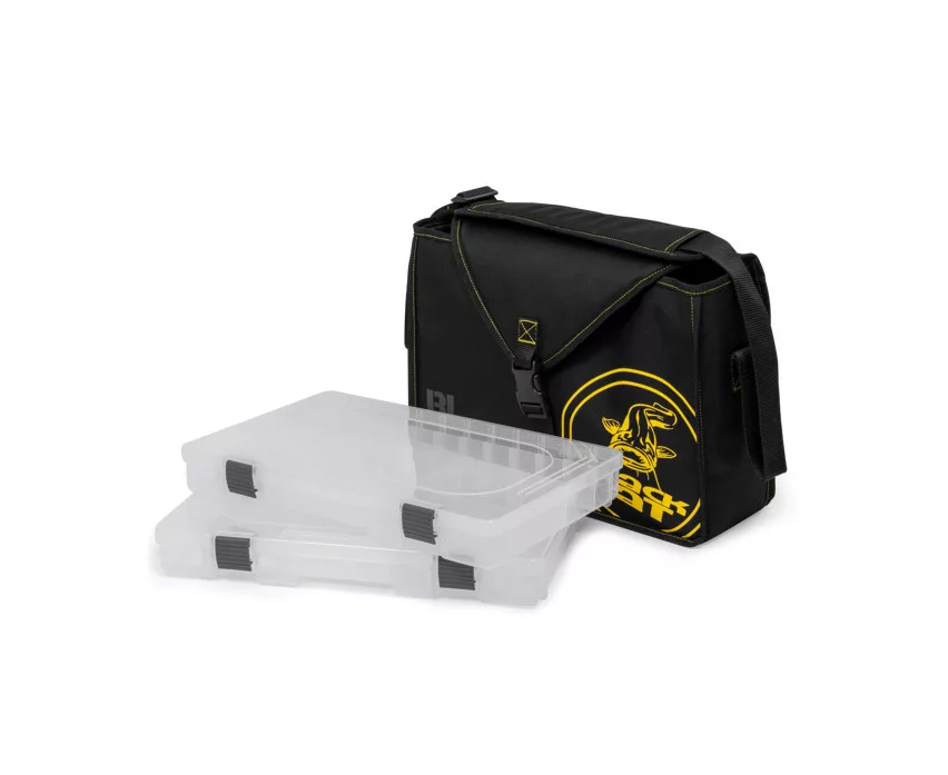 La borsa misura 38 × 26 × 13 cm e all'interno contiene due grandi scatole per artificiali (36 × 22,5 × 4,5 cm) in cui è possibile riporre in modo organizzato vari artificiali, clip, ami e altri piccoli oggetti. La robusta chiusura frontale mantiene stabile il contenuto della borsa, prevenendo aperture accidentali. La tracolla regolabile e imbottita assicura un trasporto comodo, sia durante le passeggiate a riva che durante la pesca in barca.