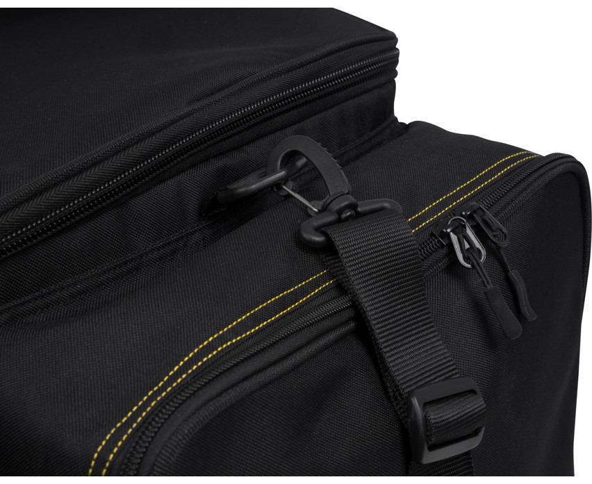 La borsa misura 76 × 48 × 48 cm e il suo design interno è integrato da tre tasche esterne che consentono un rapido accesso agli strumenti di uso frequente. Le clip robuste mantengono saldamente chiusa la borsa, prevenendo aperture accidentali. La tracolla imbottita e completamente regolabile e le maniglie imbottite assicurano un trasporto comodo, sia a mano che a spalla.